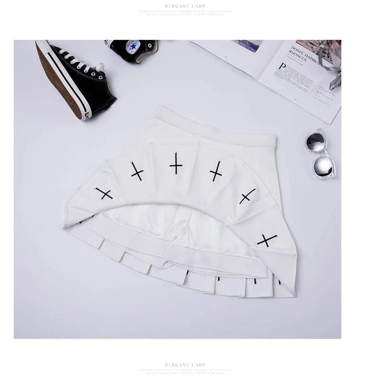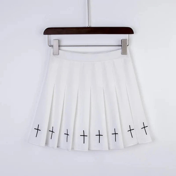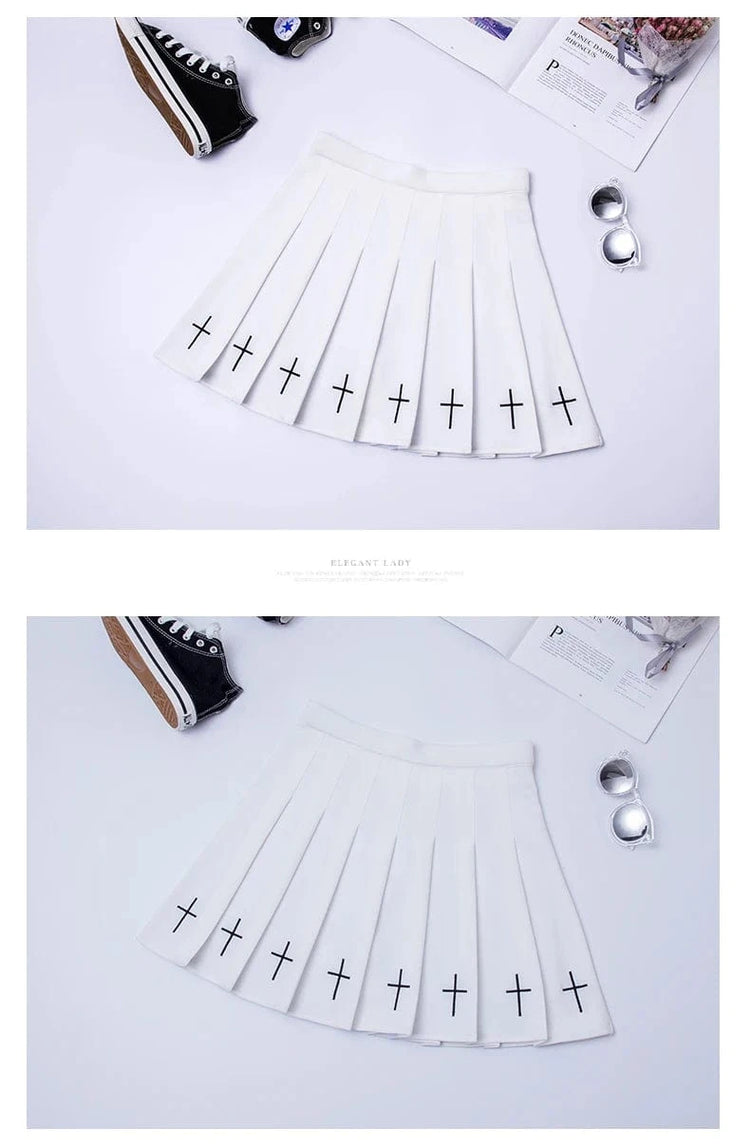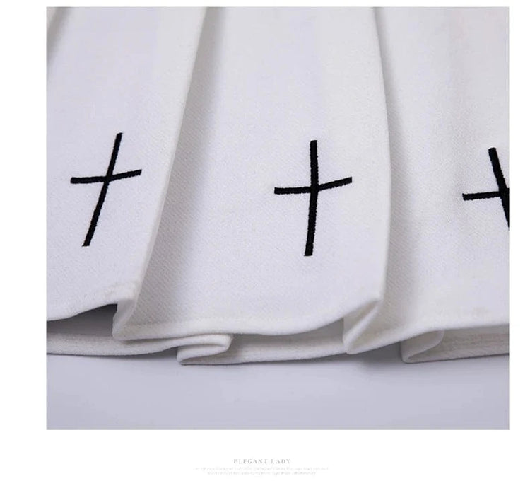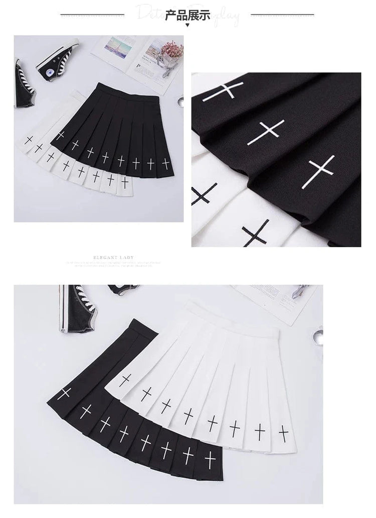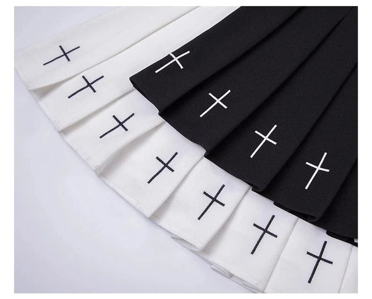 2024 Women Harajuku Sweet Fresh Feeling High Waist Pleated Skirt Elastic Waist Cross Embroidery Skirt black skirt Pleated Skirt
