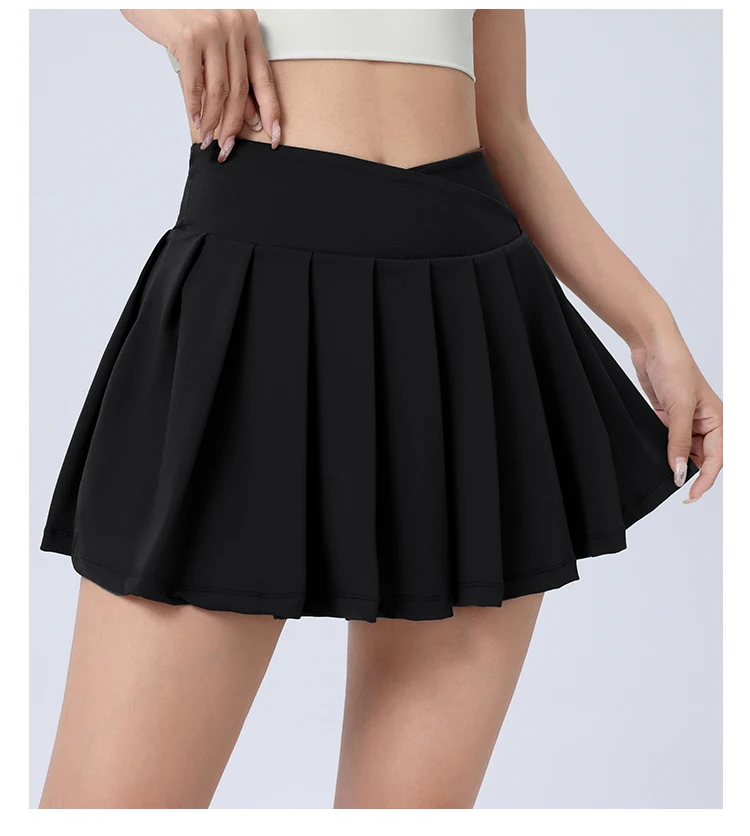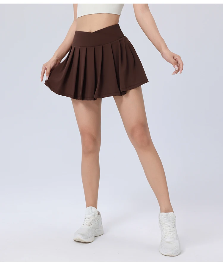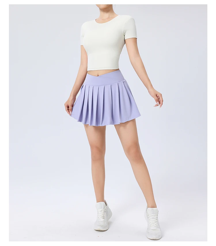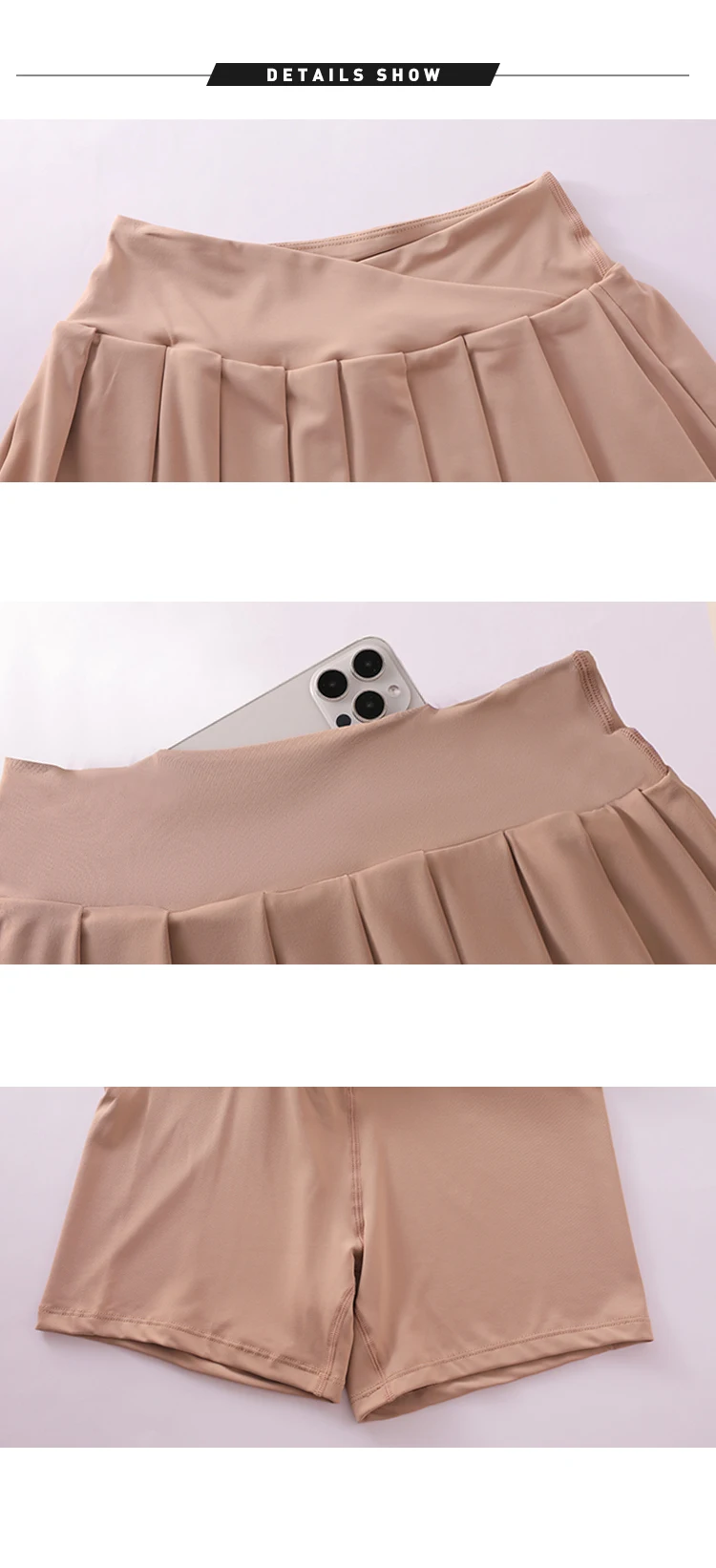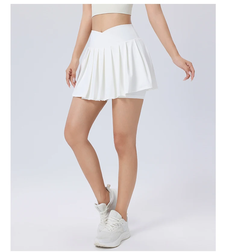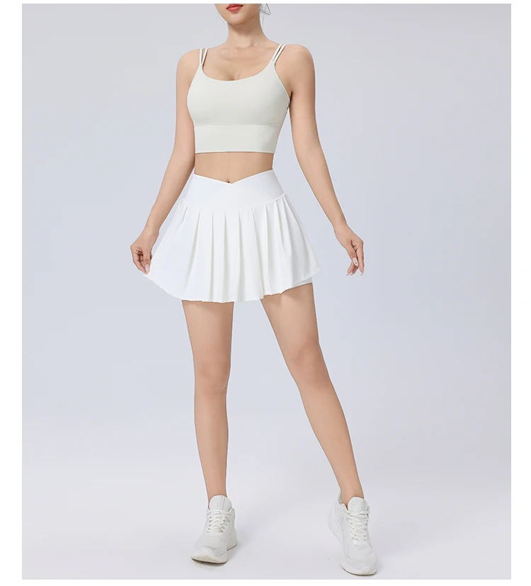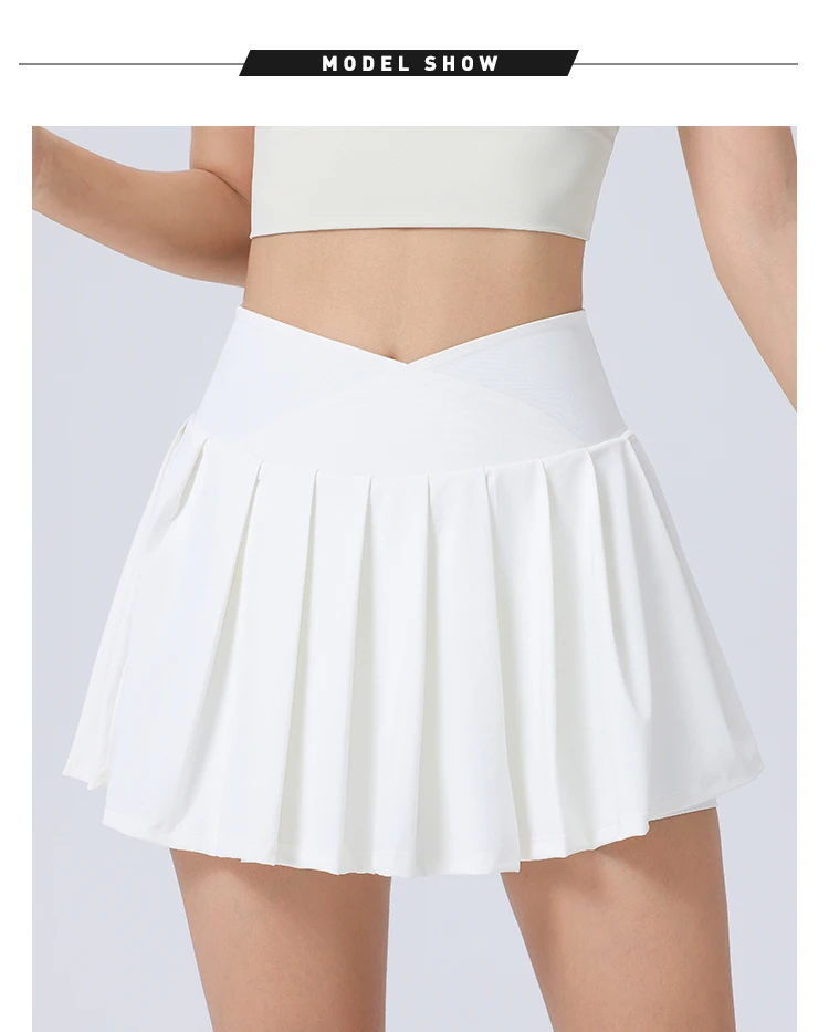 Women Girls Stretchy Compression Quick Dry Sports Wear V Cut Pleated Tennis Skorts