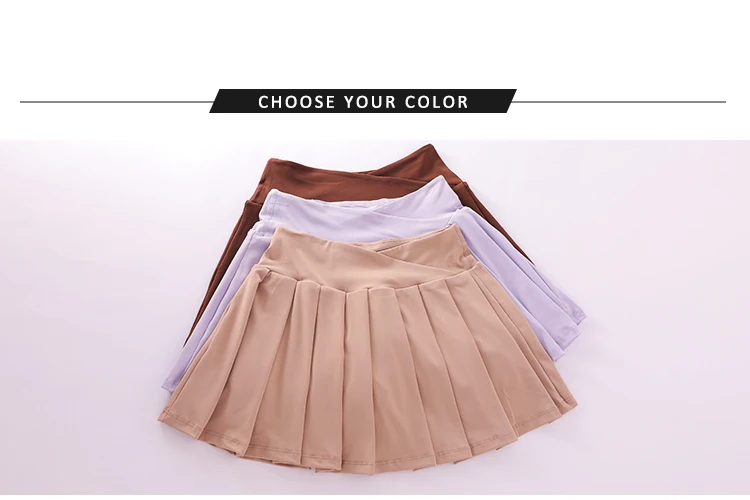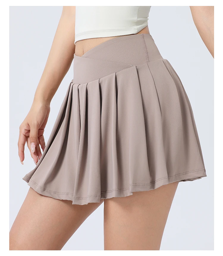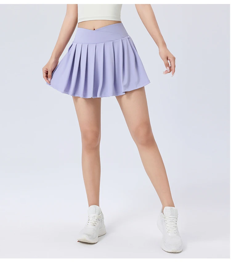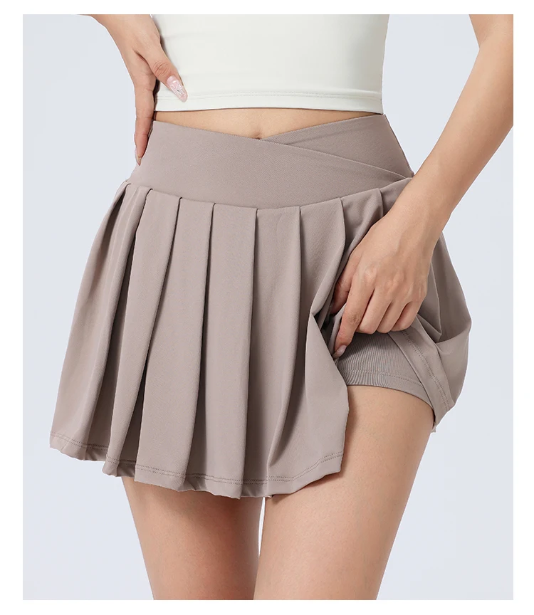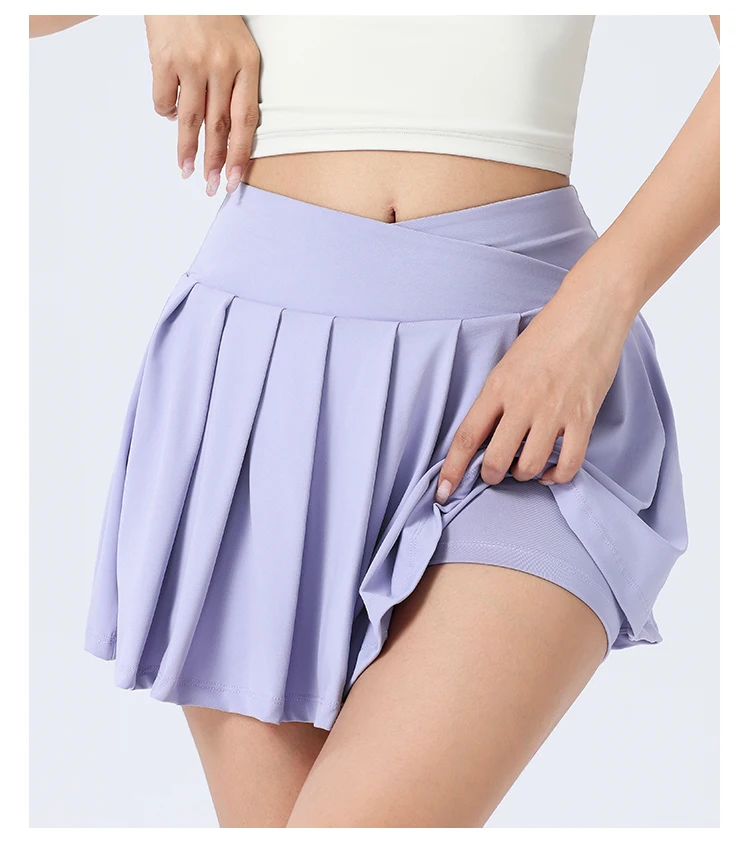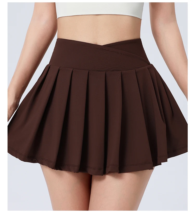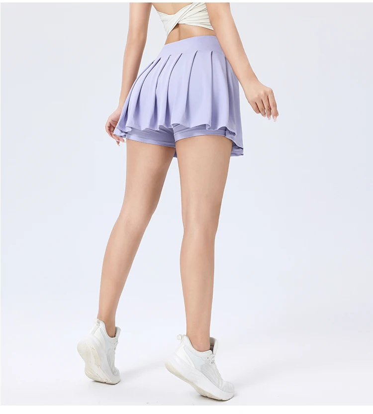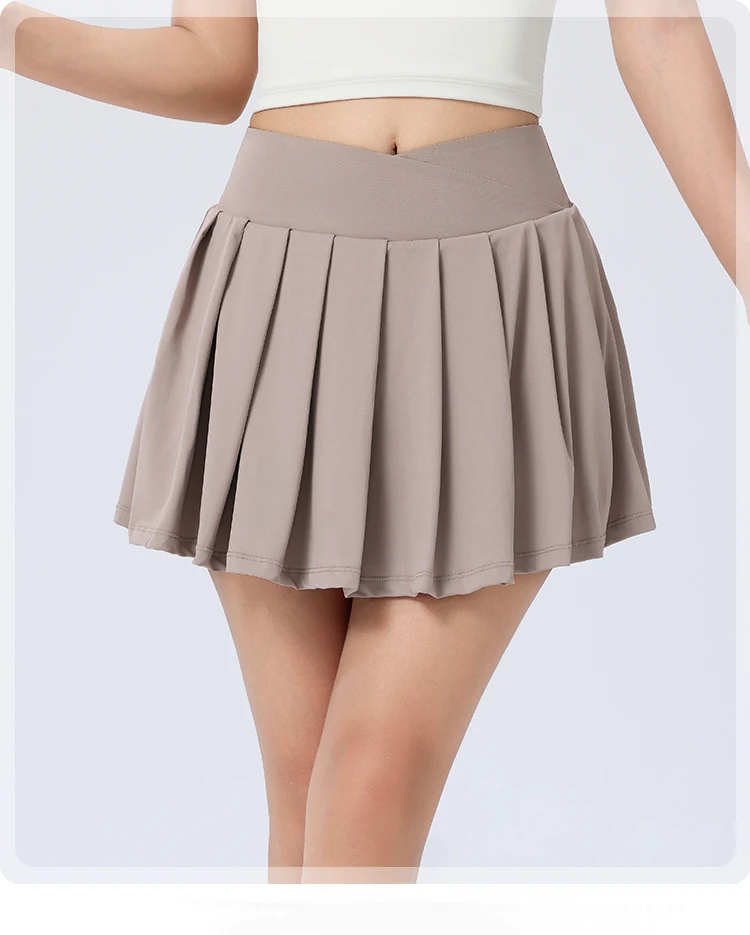 Women Girls Stretchy Compression Quick Dry Sports Wear V Cut Pleated Tennis Skorts