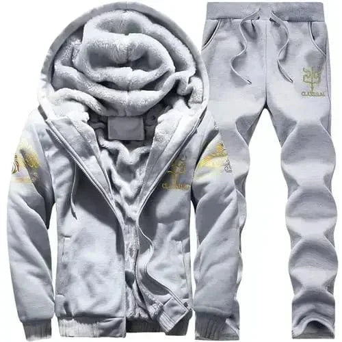 2023 New Winter Thick Men Sports Suit Tracksuit Hooded Sportswear Zipper Cardigan Hooded Woolen Trousers Pants Casual Men Set