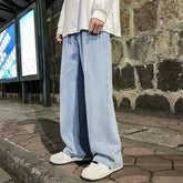 2025 New Streetwear Loose Jeans Men Korean Style Fashion Loose Straight Wide Leg Pants Men's Brand Clothing Black Light Blue