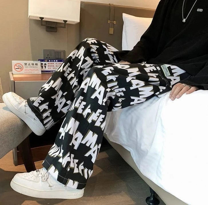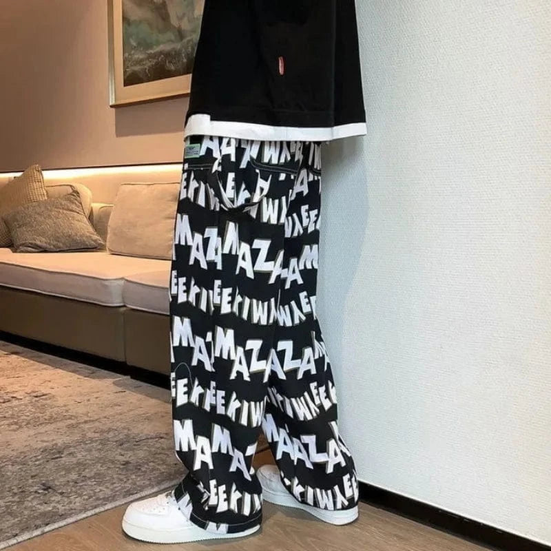 Casual Pants Man Straight Wide Hippie Hip Hop Baggy Loose Trousers For Men Aesthetic Hot Slacks Polyester Harajuku Fashion Cheap
