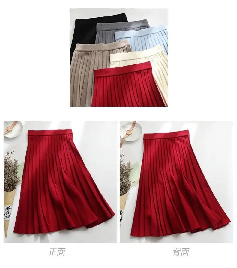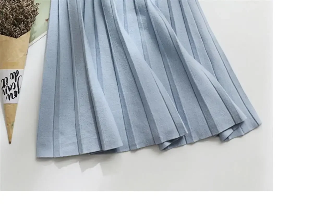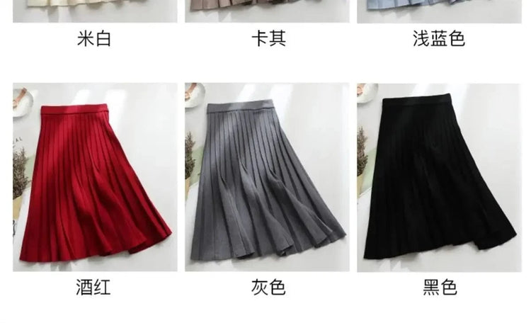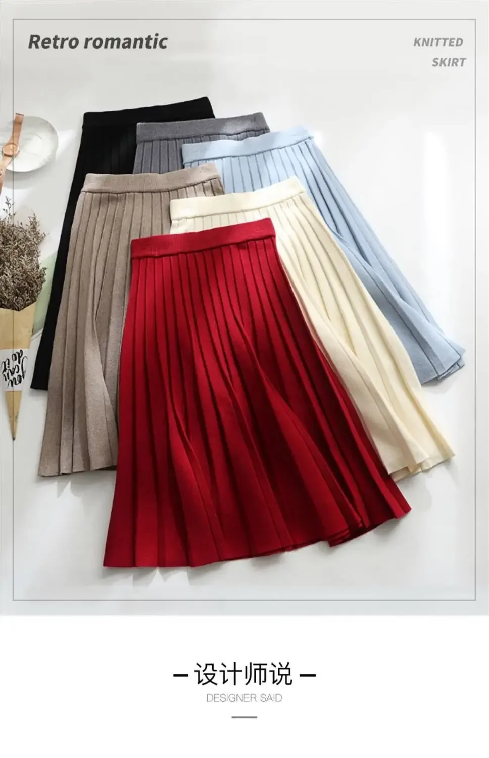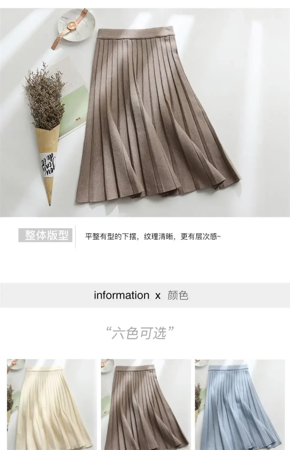 Elegant Fashion Solid Color Knit Pleated Skirt Autumn Winter A-Line Trend All-match Elastic High Waist Skirts Women's Clothing