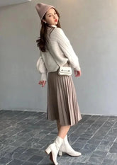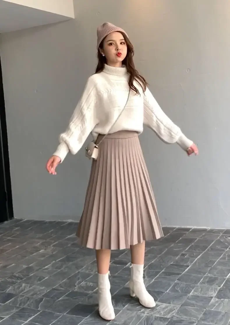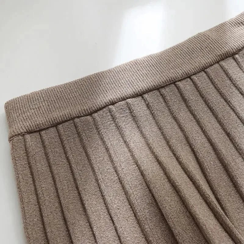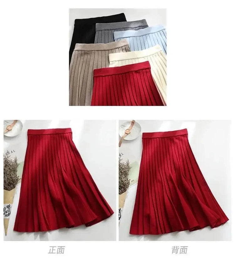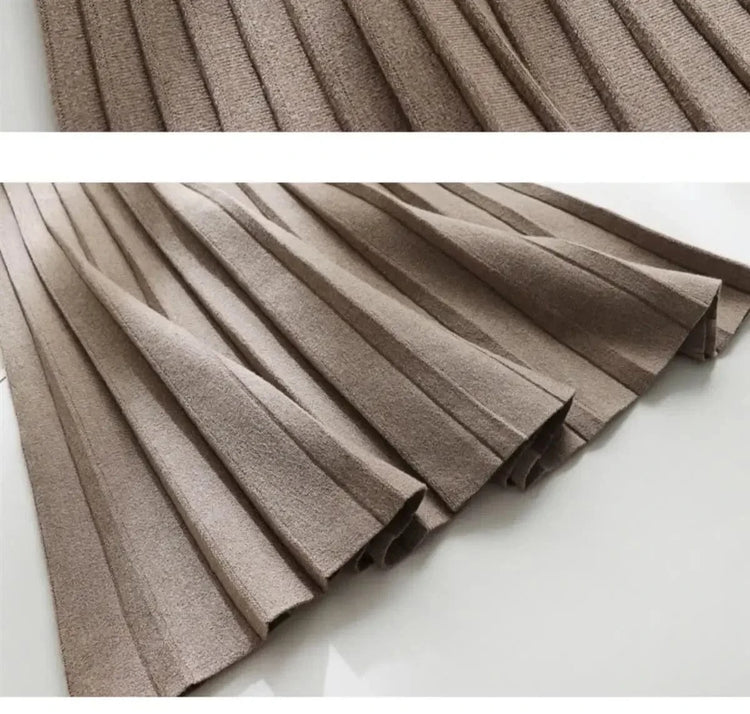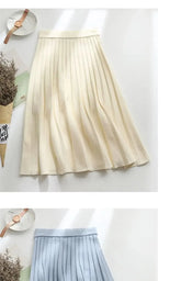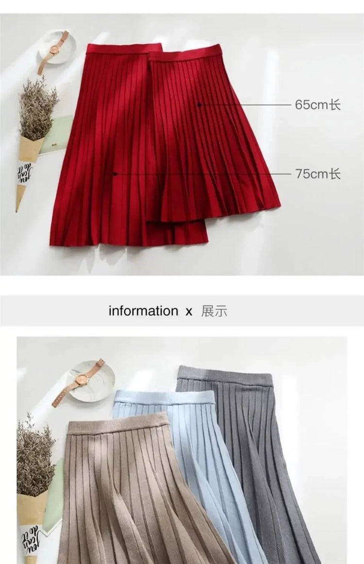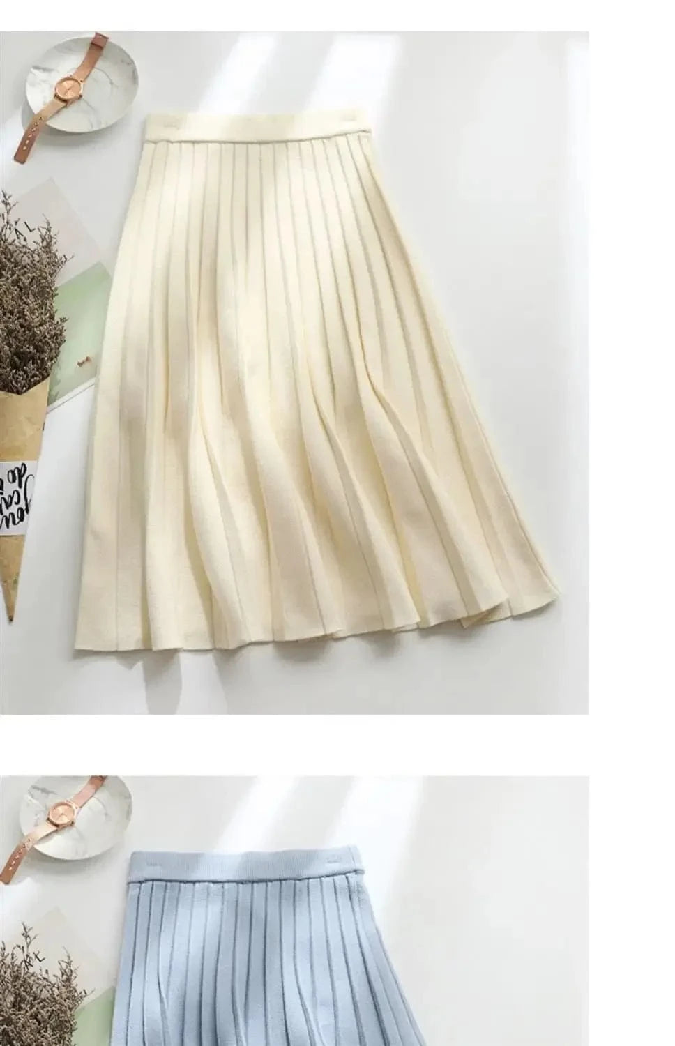 Elegant Fashion Solid Color Knit Pleated Skirt Autumn Winter A-Line Trend All-match Elastic High Waist Skirts Women's Clothing