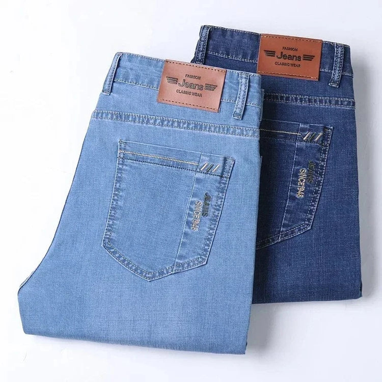 New Summer Men's Denim Shorts Fashion Light Color Casual Loose Multi-pocket Straight Five-minute Pants Elastic Knee Shorts