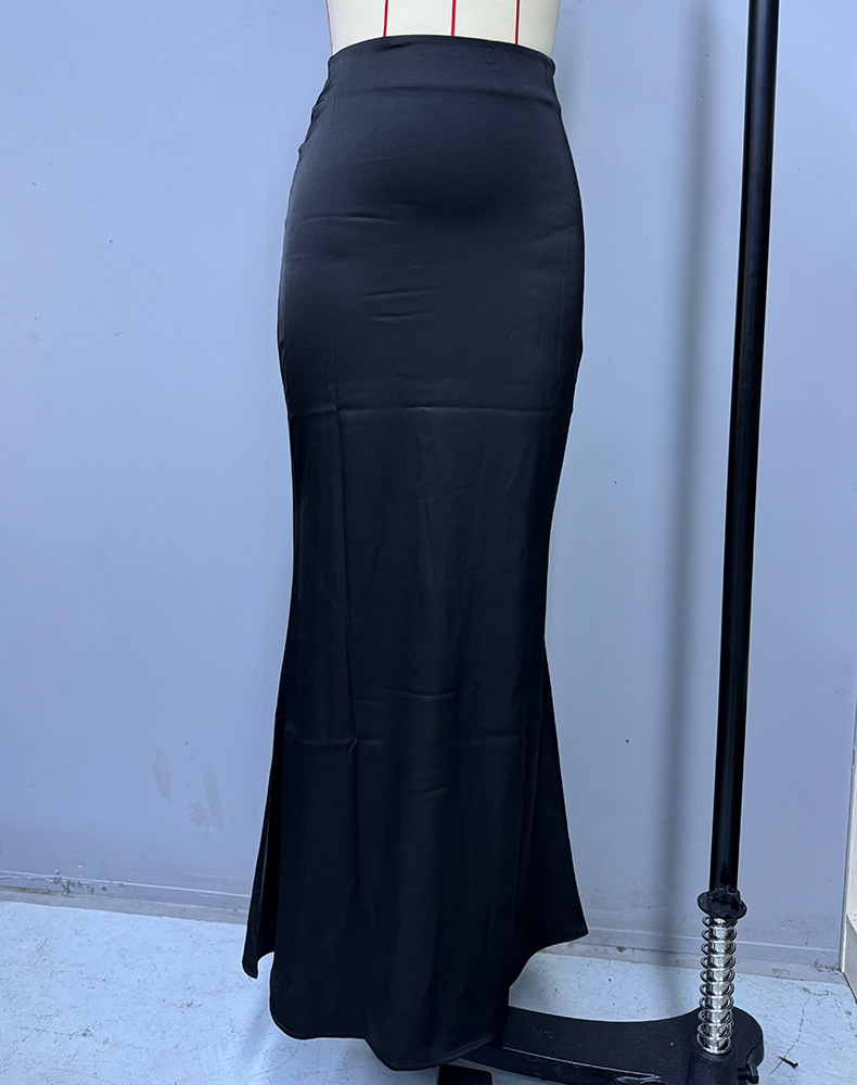 Stained satin skirt 2025 summer new simple imitation silk long skirt women's clothing club clothing Vestidos