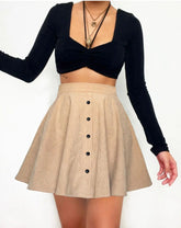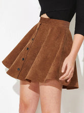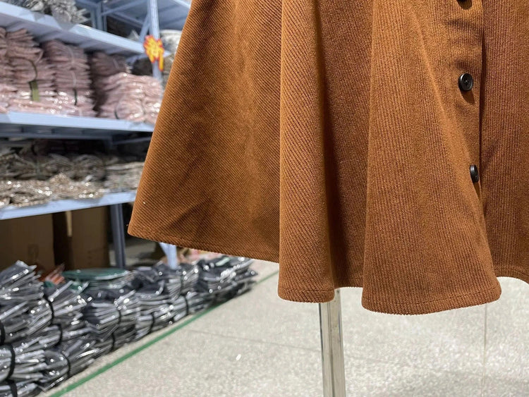 Summer Women Corduroy Single Breasted Button High Elastic Waist A-Line Loose Skirts LDY-WW5145
