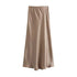 TRZA Women's Soft Touch Silk-Like Midi Skirt High Waist Elastic Waistband Chic Fashion Female Skirts Elegant Mujer