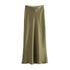 TRZA Women's Soft Touch Silk-Like Midi Skirt High Waist Elastic Waistband Chic Fashion Female Skirts Elegant Mujer