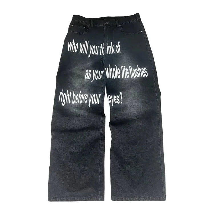 Y2K men Jeans Harajuku Pattern letter jeans Hip Hop streetwear
